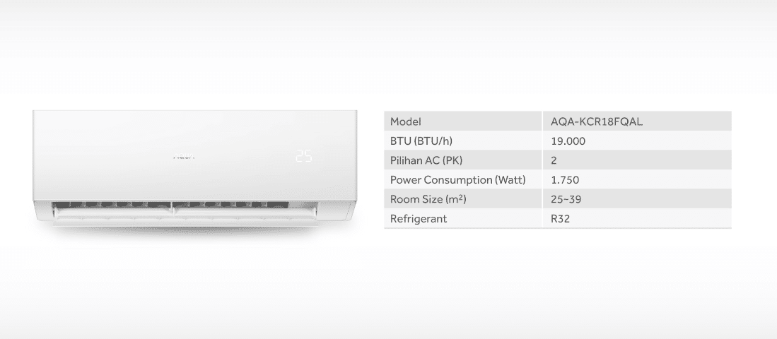 AQUA AC Split Standard 2 PK AQA-KCR18FQAL (Fast Cooling, Turbo Cool, R32, Wide Voltage)