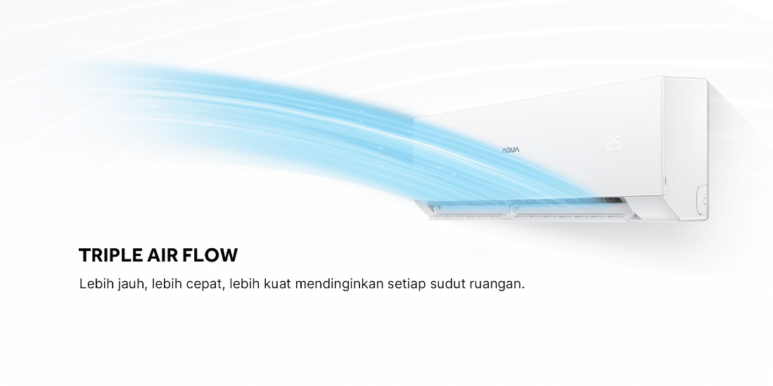 AC ini juga dilengkapi Wide Voltage untuk membantu kinerja tetap stabil saat tegangan listrik berfluktuasi, sehingga performa pendinginan tetap terjaga. Kombinasi sistem Split (Indoor + Outdoor) dan aliran udara yang optimal membuat sebaran udara dingin lebih merata. Produk ini didukung garansi resmi pabrik untuk perlindungan jangka panjang (mengikuti ketentuan dan prosedur garansi resmi).
