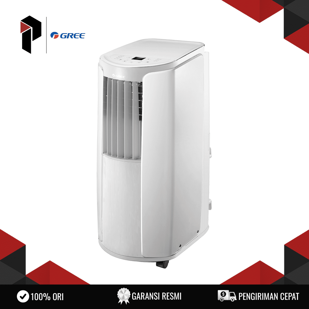 GREE AC Portable 1 PK GPC-09P1 memakai refrigerant R32 dengan kapasitas 9.000 BTU/h dan konsumsi daya 1000W. Praktis portable untuk penempatan mudah, dilengkapi Dehumidify Mode, Fan Mode, Sleep Mode, Timer, Auto Restart, serta Remote Control Infrared (IR). Garansi resmi: Compressor 3 tahun, Sparepart 1 tahun.
