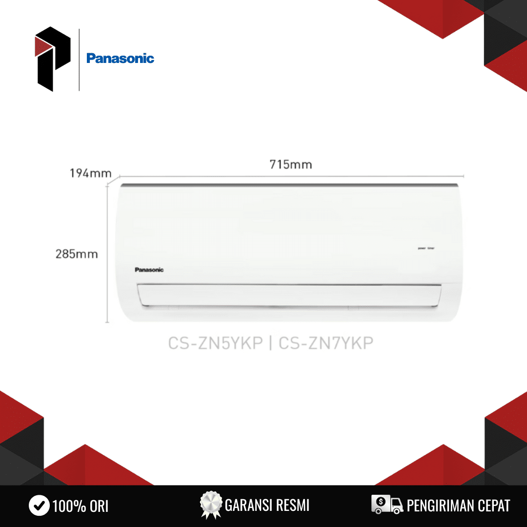PANASONIC AC Split 0.5 PK CS-ZN5YKP (Compact, Entry Level Cooling) 5.000 BTU/h 389W R32 Eco Friendly Sleep Mode Timer Auto Restart Remote Control Infrared (IR) Garansi Resmi Compressor 3 tahun Sparepart 1 tahun
