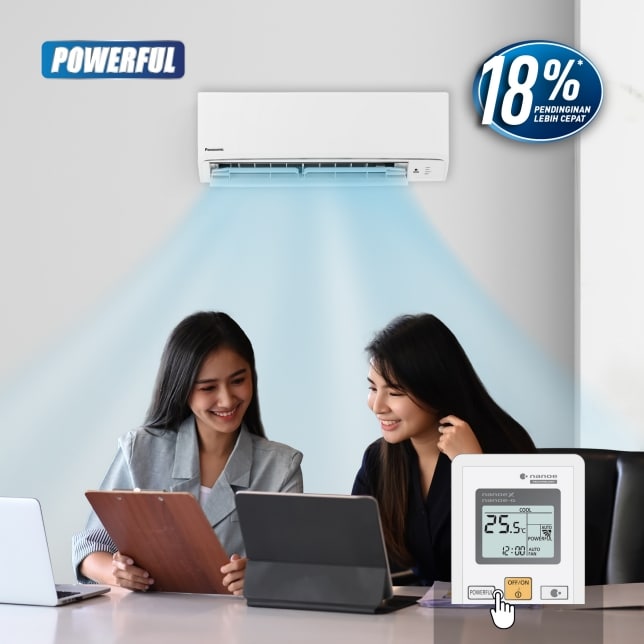 • Fitur Utama: Nanoe Technology (2-in-1 Air Purifier), POWERFUL Mode, Low Voltage hingga 160V, Blue Fin Evaporator, Blue Fin Condenser, Ecotough Outdoor, Remote Control Infrared (IR)