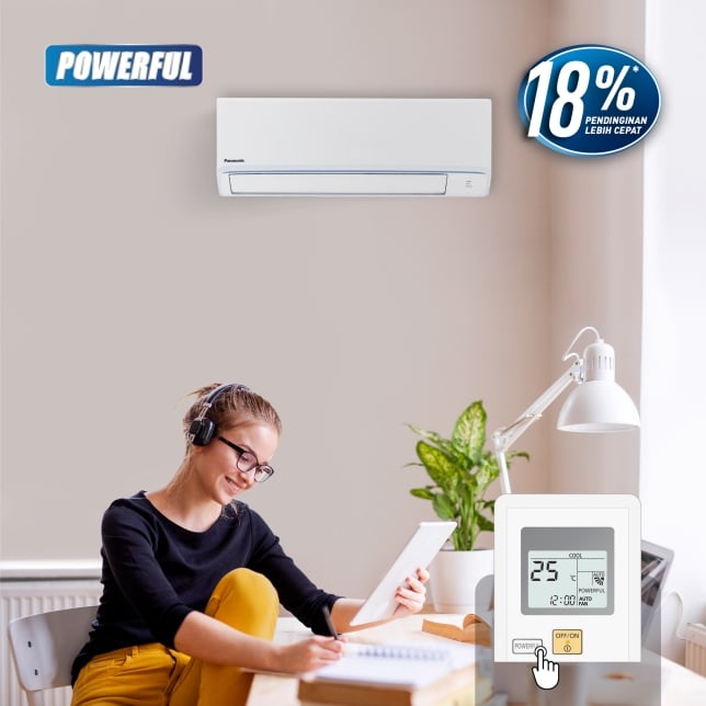 PANASONIC CS-LN7WKJ adalah AC split low watt 0.75 PK yang cocok untuk kamar tidur atau ruangan kecil–menengah, dengan performa pendinginan stabil dan konsumsi listrik efisien. Kapasitas pendinginan 7.000 BTU/h dipadukan dengan daya 610W untuk pemakaian harian yang nyaman. Fitur POWERFUL Mode membantu ruangan terasa lebih cepat dingin saat awal dinyalakan, sementara aliran udara yang efisien membantu sebaran udara lebih merata.